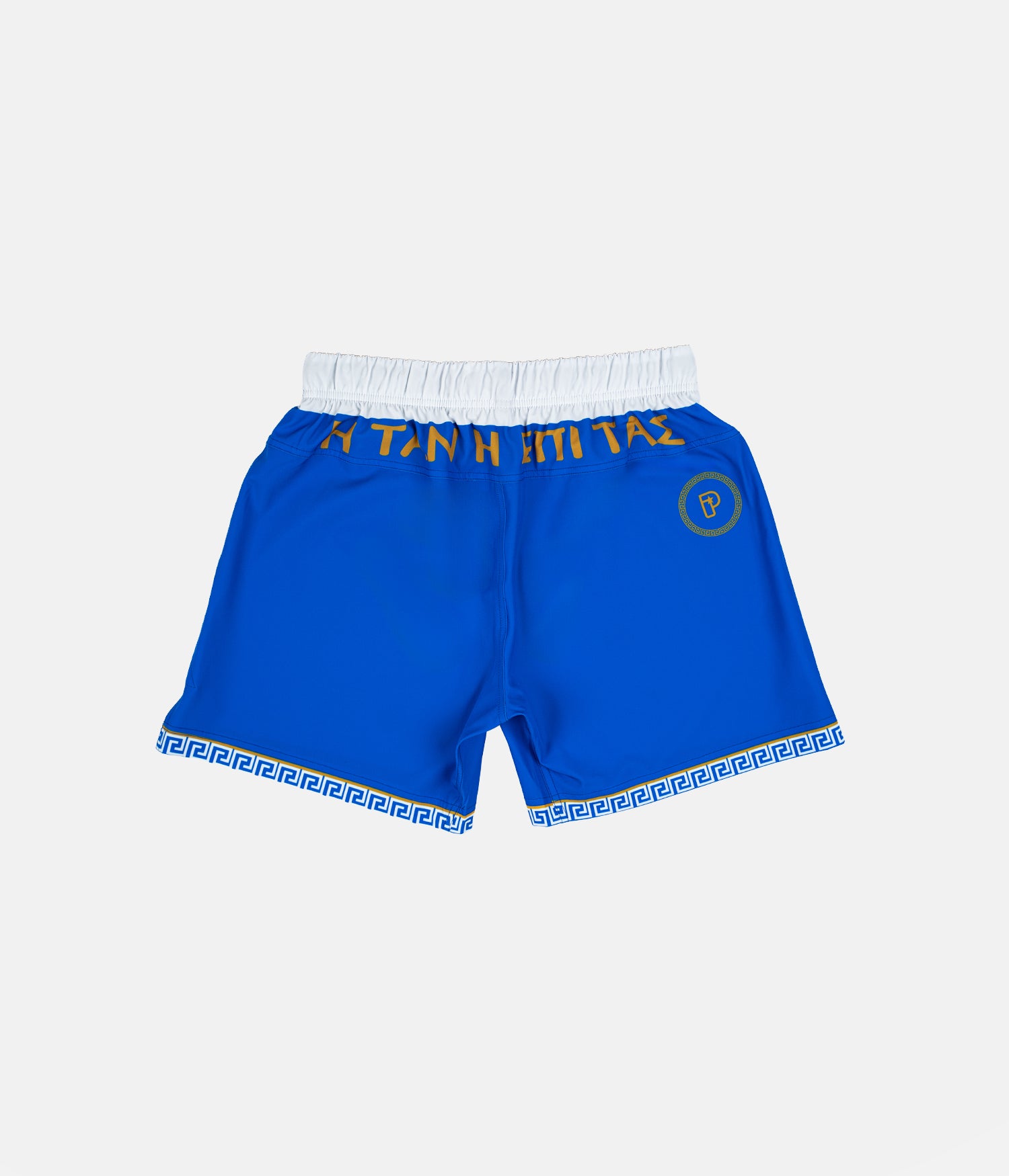 Across the back waistband sits the Spartan call “Η ΤΑΝ Η ΕΠΙ ΤΑΣ”, a phrase once given to soldiers heading into battle, return victorious with your shield, or be carried home upon it. Subtle Greek detailing and design fragments reference the country’s long martial and athletic tradition.