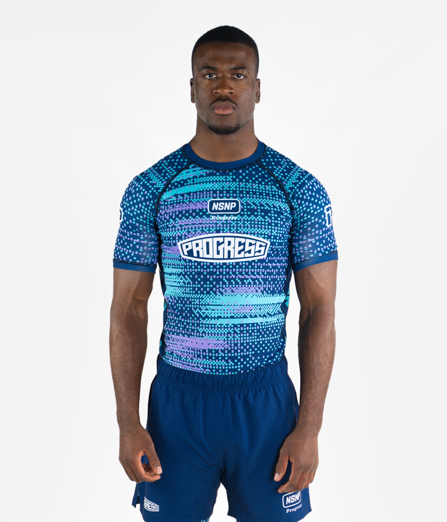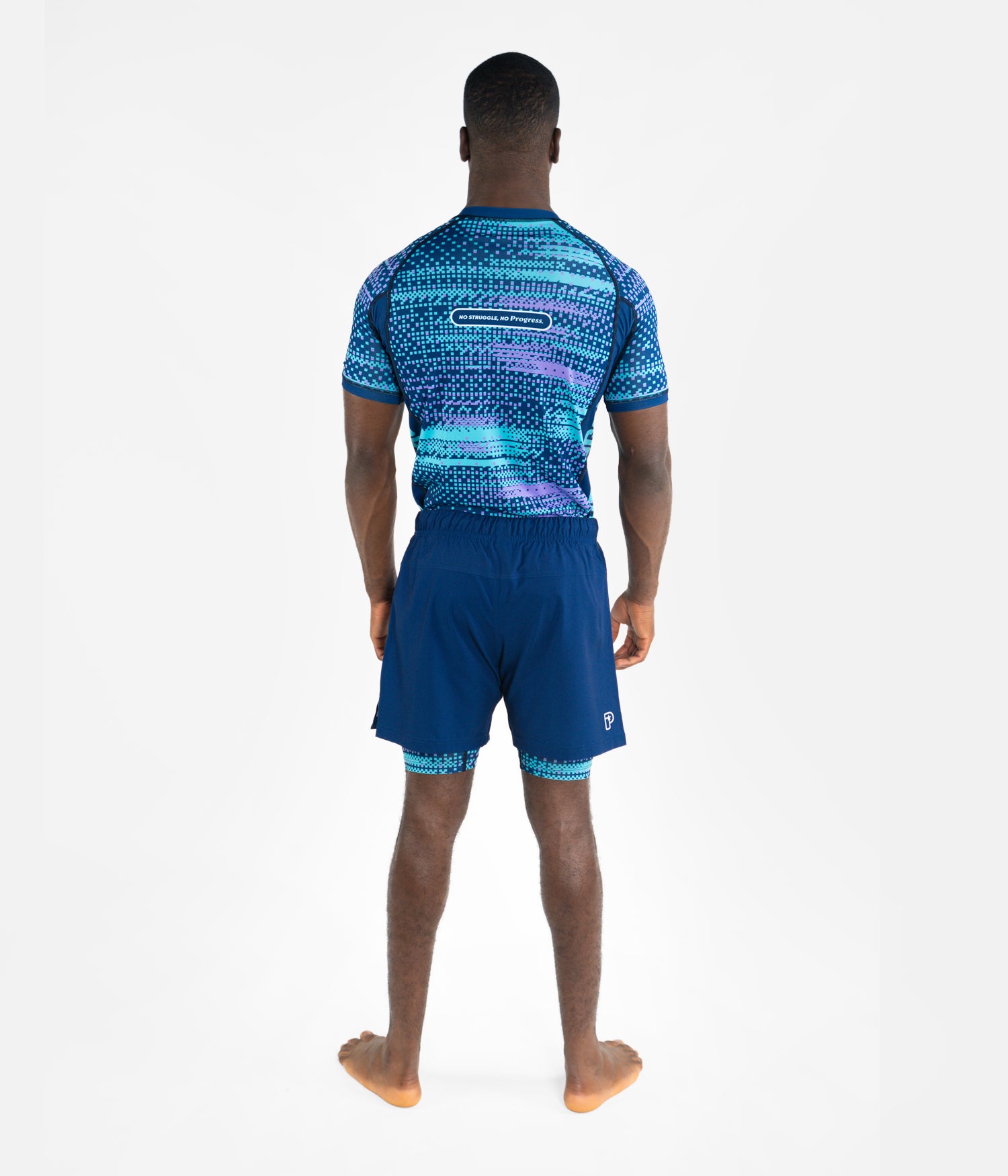 The Balance Isolate Rashguard introduces a new intensity within the Balance Series. The BJJ Rashguard features a pixelated pattern with shifting shades of light blue and lavender set against a deep navy base. Isolate represents the moments of intensity within consistent training. It’s a statement piece that still remains anchored in the Balance Series ethos of rhythm and controlled progression.