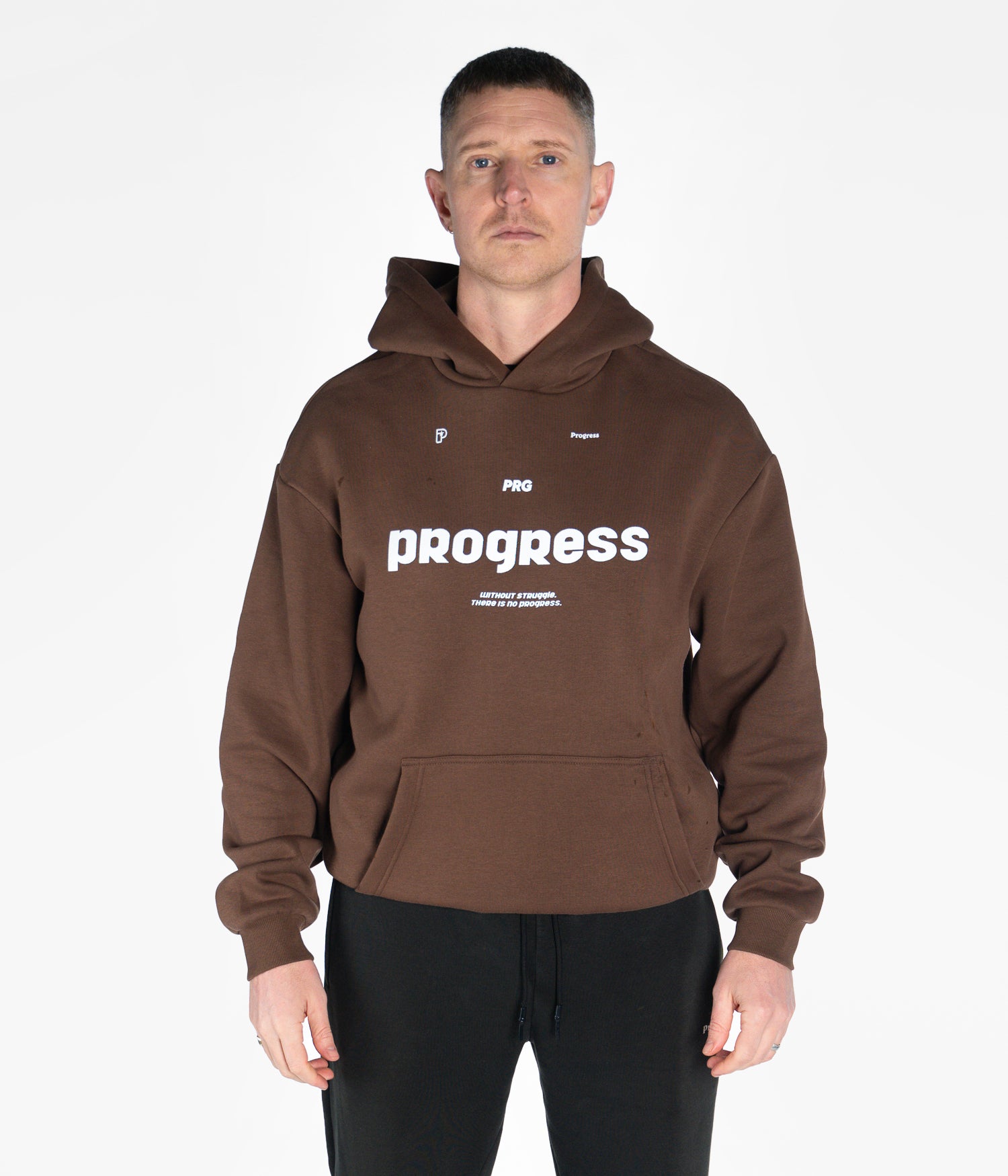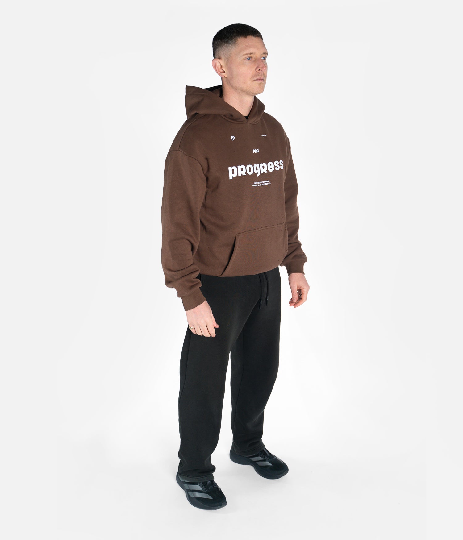 The vital hoodie in chocolate. After the black vital hoodie sold out, the vital hoodie returns in a new chocolate colour way. Featuring iconic progress branding, our tried, tested, and much-loved dropped shoulder fit, and a signature clean design built for everyday wear.