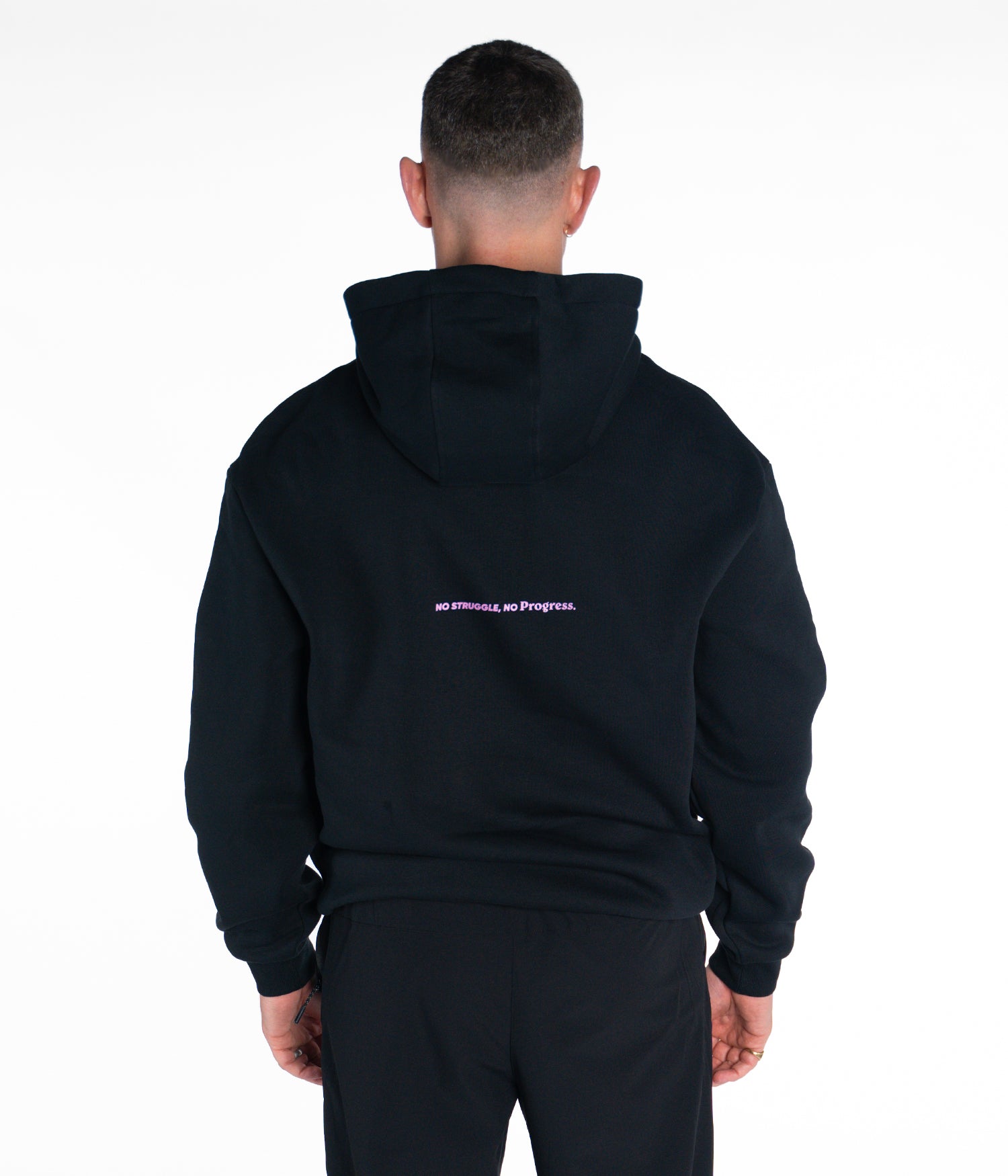 Designed with a dropped shoulder construction and an oversized fit, the hoodie maintains a clean, understated look. Bold pink Progress branding adds contrast to the base design, staying consistent with the Balance Series aesthetic. Made from a cotton and polyester blend, this hoodie is intended for regular, everyday use.