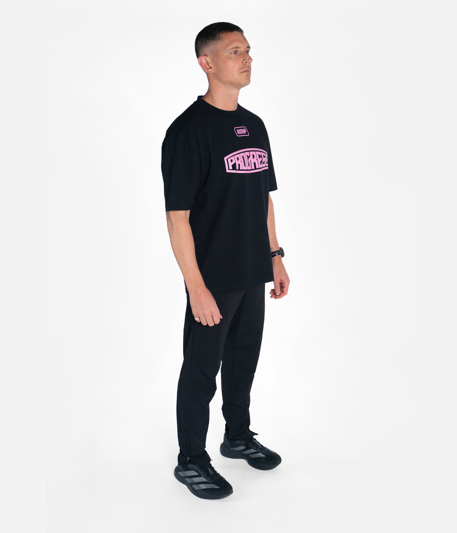 Cut with an oversized fit and made from a mid-weight cotton and polyester blend. Bold pink Progress branding adds contrast to the base design while keeping the overall look clean and understated. Designed for regular wear, on and off the mats.